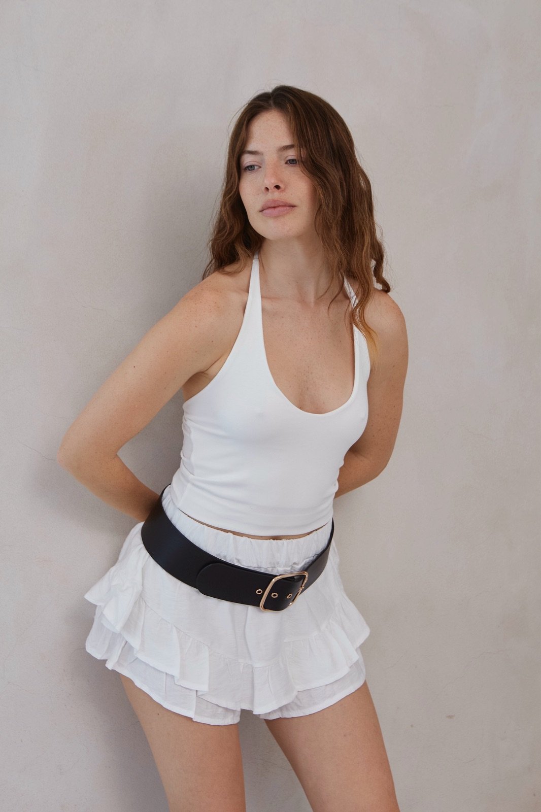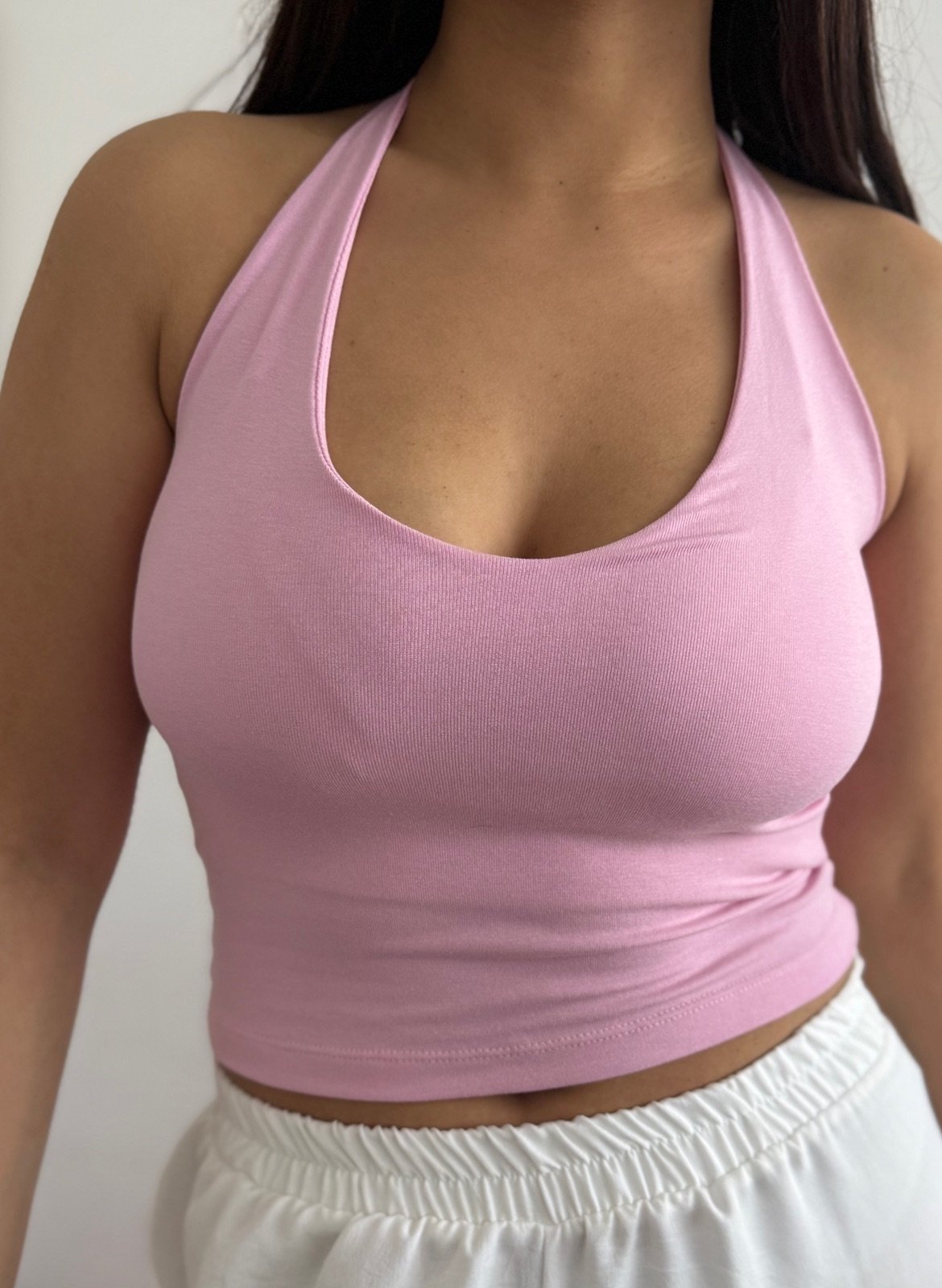 Remera básica, se ata al cuello tiene doble tela en el frente para una mejor sujeción y cobertura del busto.
