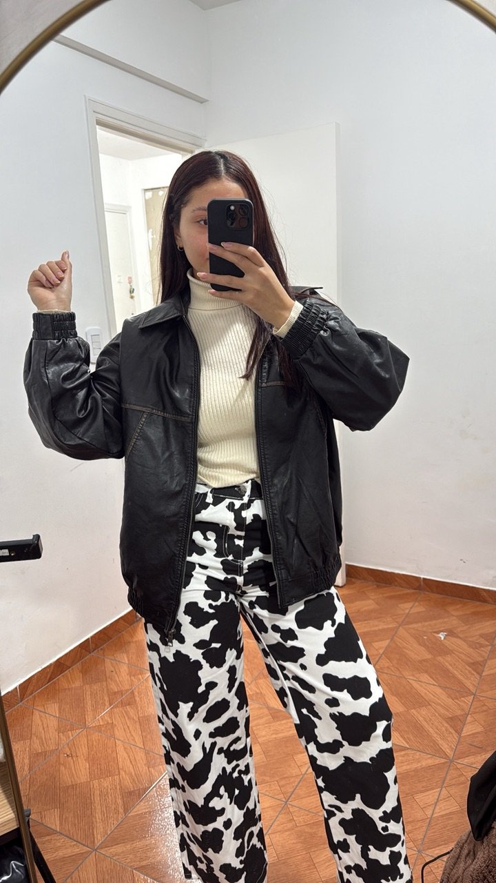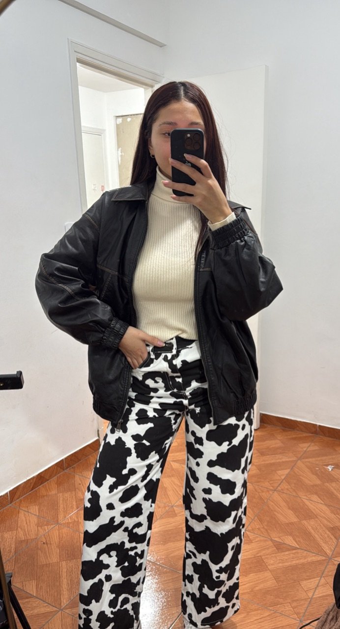 Pantalón Cold de vaquita, con estampado de vaquita estilo cow. Modelo rígido, corte ancho estilo Wide Leg . Cuenta con bolsillos delanteros y traseros, además de pasacintas en la cintura para sumar cinturón. Modelo rígido.